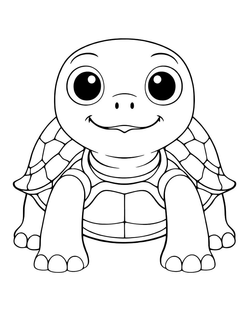 Color this adorable baby turtle with big, friendly eyes and a patterned shell. A fun, calming page for kids and turtle lovers to enjoy at home or school.